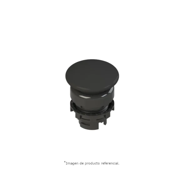 Pulsador negro con retorno por resorte, Ø 36 mm, anillo negro, con grado de protección IP67 según EN 60529 e IP69K según ISO 20653.